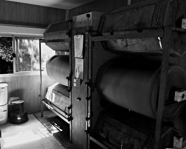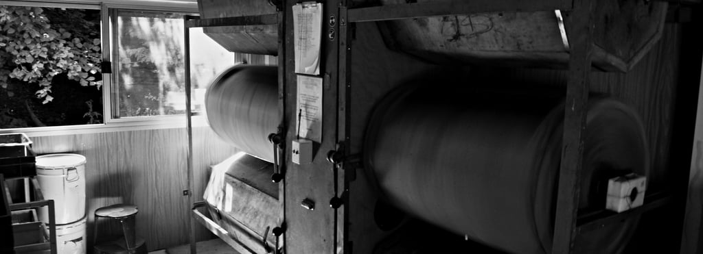 Le vacarme industriel démarre alors que nos machines prennent vie : fraiseuses à commande numérique, tours à polir, bacs à ultrasons, scies, vérins à air comprimé... Le bruit de la création résonne dans notre espace. Chaque coin de nos 500 m² a une fonction précise, du stock aux machines de découpe à commande numérique, en passant par notre bâtiment dédié aux tonneaux de polissage. Ce dernier est un véritable spectacle pour nos invités, avec 15 tonneaux en bois et en métal tournoyant comme une symphonie de cymbales.